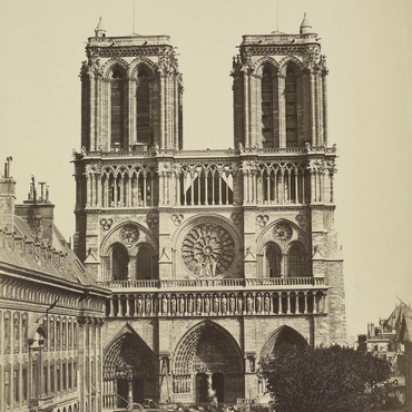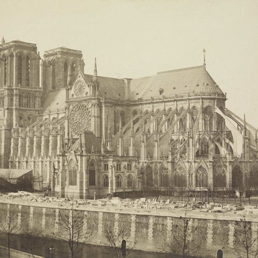En 1844, Notre-Dame est dans un état de conservation préoccupant. Privée d’une partie importante de ses sculptures décoratives au cours du XVIIIe siècle, de sa flèche (1792), de la statuaire de la galerie des Rois (1793), elle bénéficie jusqu’en 1865 d’importants travaux sous la direction d’Eugène-Emmanuel Viollet-le-Duc.