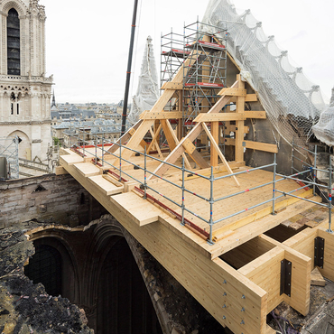 Pour soutenir les arcs-boutants et préserver ainsi les voûtes endommagées, 28 cintres en bois ou en métal ont été posés. Cette opération particulièrement délicate et spectaculaire a été conduite sous la direction de l’architecte en chef des monuments historiques du 2 juillet 2019 au 28 février 2020. Ces cintres permettent en cas de mouvement de compenser la disparition du poids de la charpente et de la couverture nécessaire à l’équilibre de la structure.